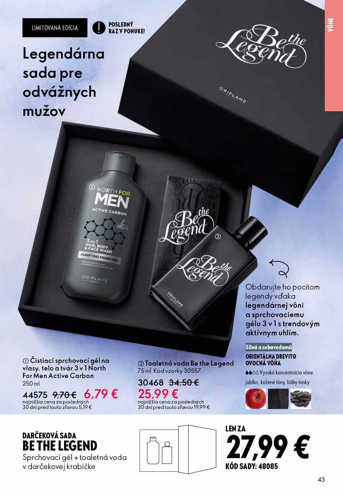 Toaletná voda Be the Legend Parfémy Oriflame - Vôňa pre sebavedomého, avšak prístupného muža, ktorý je vzrušujúci, a zároveň uvoľnený. Toaletná vôňa Be the Legend zachytáva podstatu tohto rebela plného kontrastov v spojení se xi kožených tónov s tónmi chrumkavého šťavnatého jablka a omamnými hrejivými akordmi bôbov tonky. 75 ml.